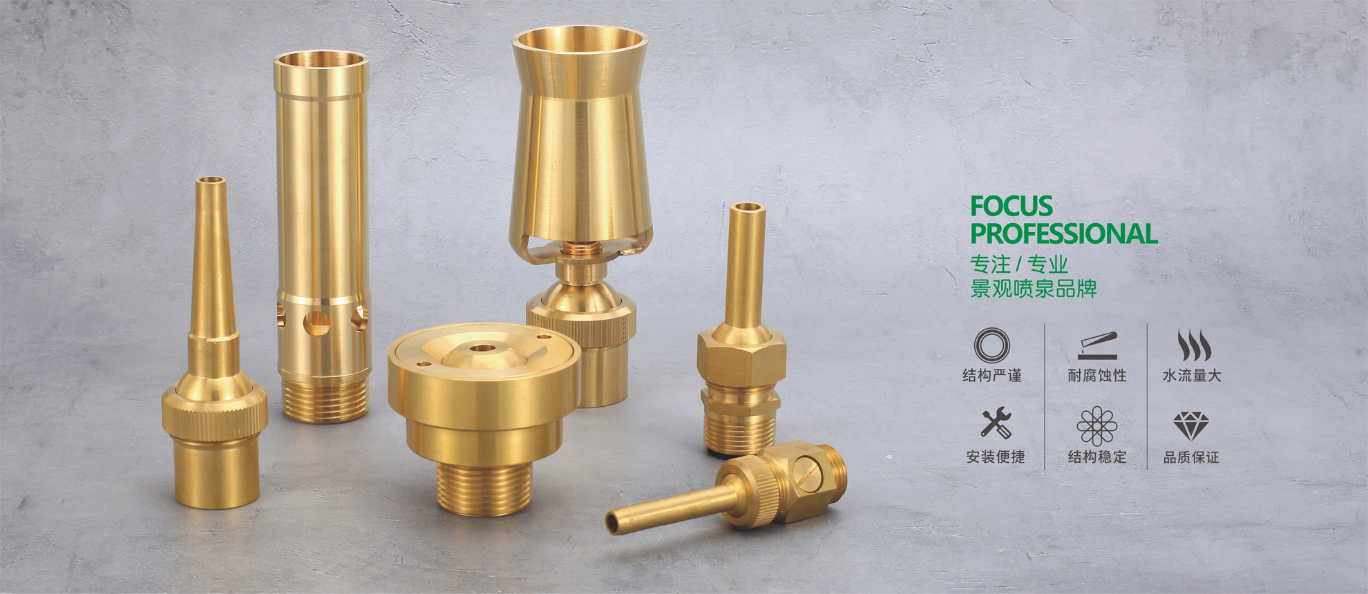 諸暨雨潤(rùn)噴泉噴灌設(shè)備有限公司位于美麗的西施故里,浙贛高速鐵路,杭金衢高速公路出口15公里,距離杭州蕭山國(guó)際機(jī)場(chǎng)38公里,寧波港110公里,上海港250公里,交通十分便捷。 本公司是國(guó)內(nèi)較大開發(fā)、生產(chǎn)各種銅、304L不銹鋼水景噴泉噴頭及各種噴灌設(shè)備的專業(yè)廠家。產(chǎn)品主要服務(wù)與市政建設(shè)、園林裝飾以及單位、家庭的環(huán)境美化。“雨潤(rùn)”牌噴泉、噴灌產(chǎn)品具有設(shè)計(jì)精、結(jié)構(gòu)新穎、花樣繁多等特點(diǎn)。并獲得中華人民共和國(guó)進(jìn)出口資格證書,可自理報(bào)關(guān)業(yè)務(wù),產(chǎn)品遠(yuǎn)銷世界各地,在全國(guó)三十多個(gè)省、市、自治區(qū)有銷售,深受廣大用戶青睞。